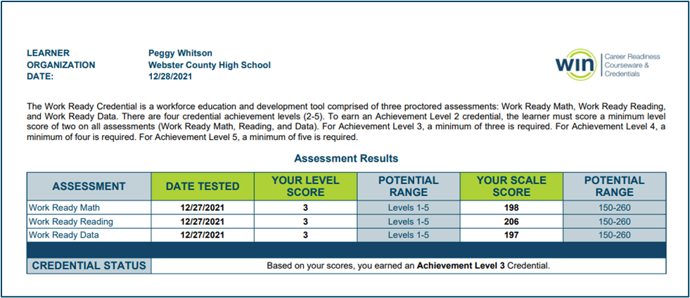 Work Ready Individual Score Report