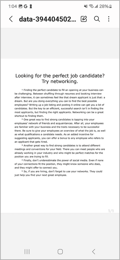 On Android mobile phones, reading passages will be accessed via a button that opens the passage in a new view. Passages can be downloaded if desired.