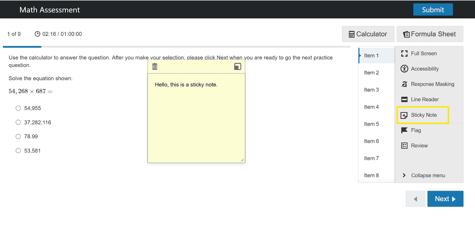New annotation tools including sticky notes, review mode, and item flags to support test-taker focus and navigation