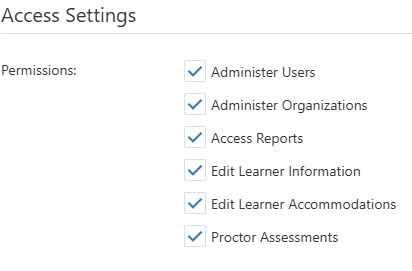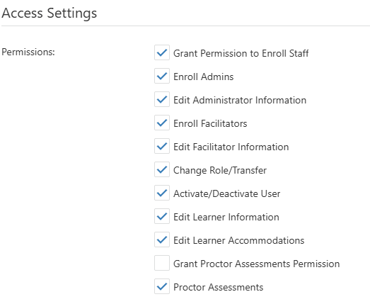 Grant Proctor Assessments Permission | User has the ability to grant staff below them in the hierarchy permission to proctor assessments |