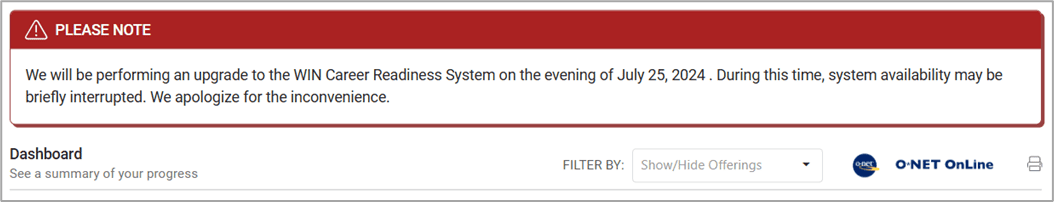 - Ability to display the system message on the Learner Dashboard so that learners have access to it even if they login through SSO.