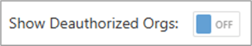 - Deauthorized organizations are hidden by default in all reports. Users may toggle to show deauthorized orgs.
