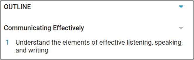 Rinoa can remediate this objective by going to the Soft Skills Courseware product and reviewing Communicating Effectively Lesson 1 as indicated in the course outline.