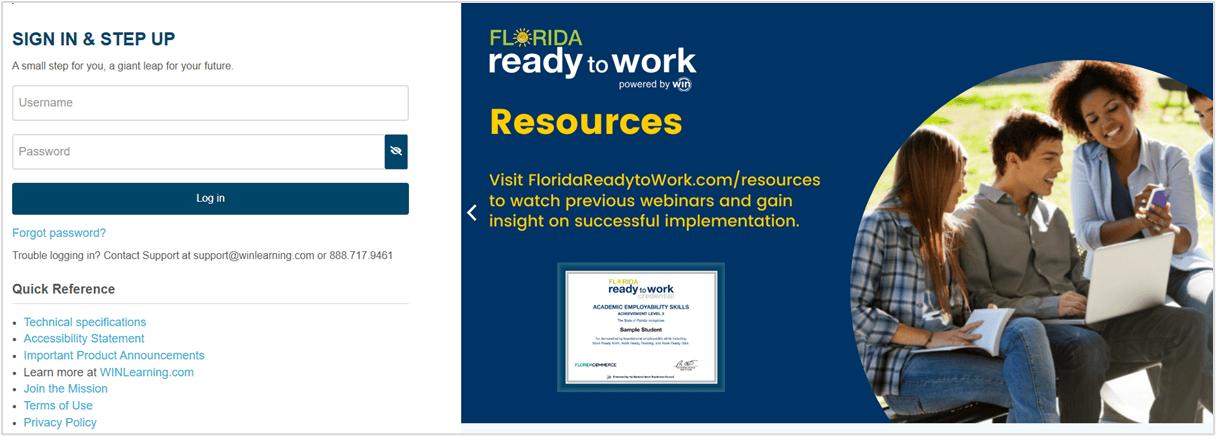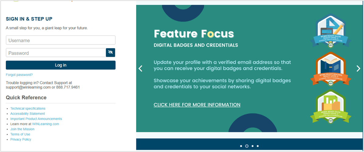 - A link to the new My Work Ready specific technical specifications has been added to the login page.