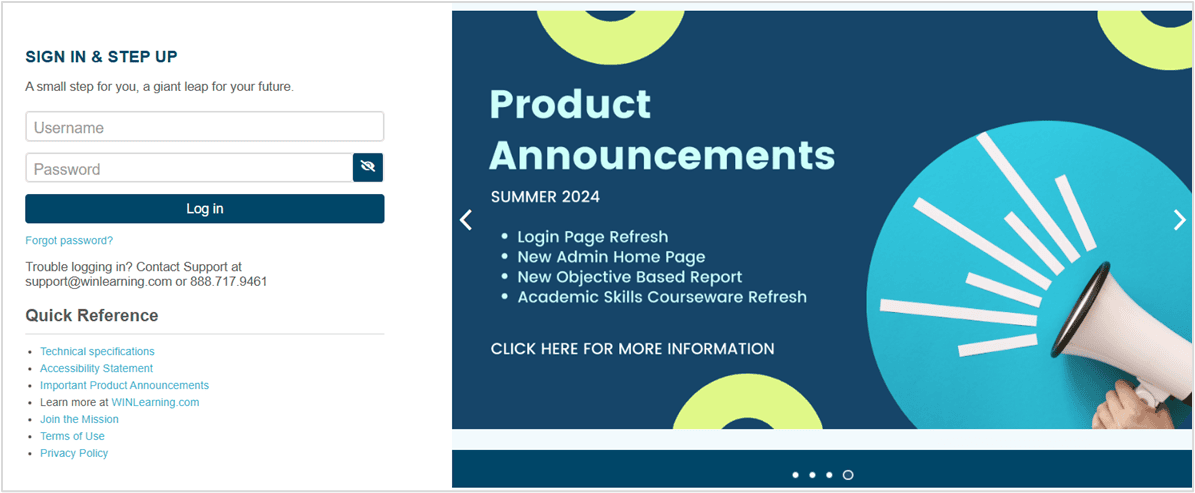 The new login page features rotating images and announcements to help keep users informed about products and features.