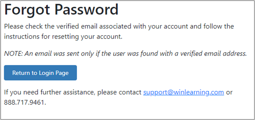 To report issues or ask questions about this release, please contact the WIN Learning Help Desk: