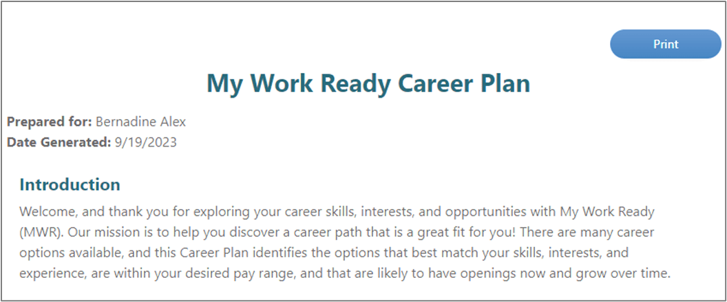 Teachers and admins can access their participants’ earned Career Plans via Reporting. If a participant has unlocked their Career Plan (by completing Steps 1 and 2), an icon will appear next to their name in the Individual Report. Clicking the icon will open a new tab with the participant’s Career Plan.